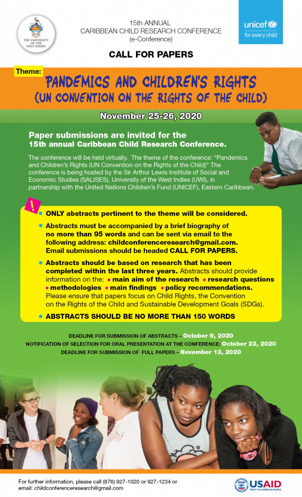 The 15th Annual Caribbean Child Research Conference 2020 (e-Conference): Call for Papers Adult Researchers